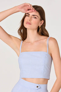 Modern minimalism meets nautical charm in this striped crop top with double strap details. The structured fit and clean lines create a versatile foundation for high-waisted bottoms.