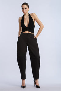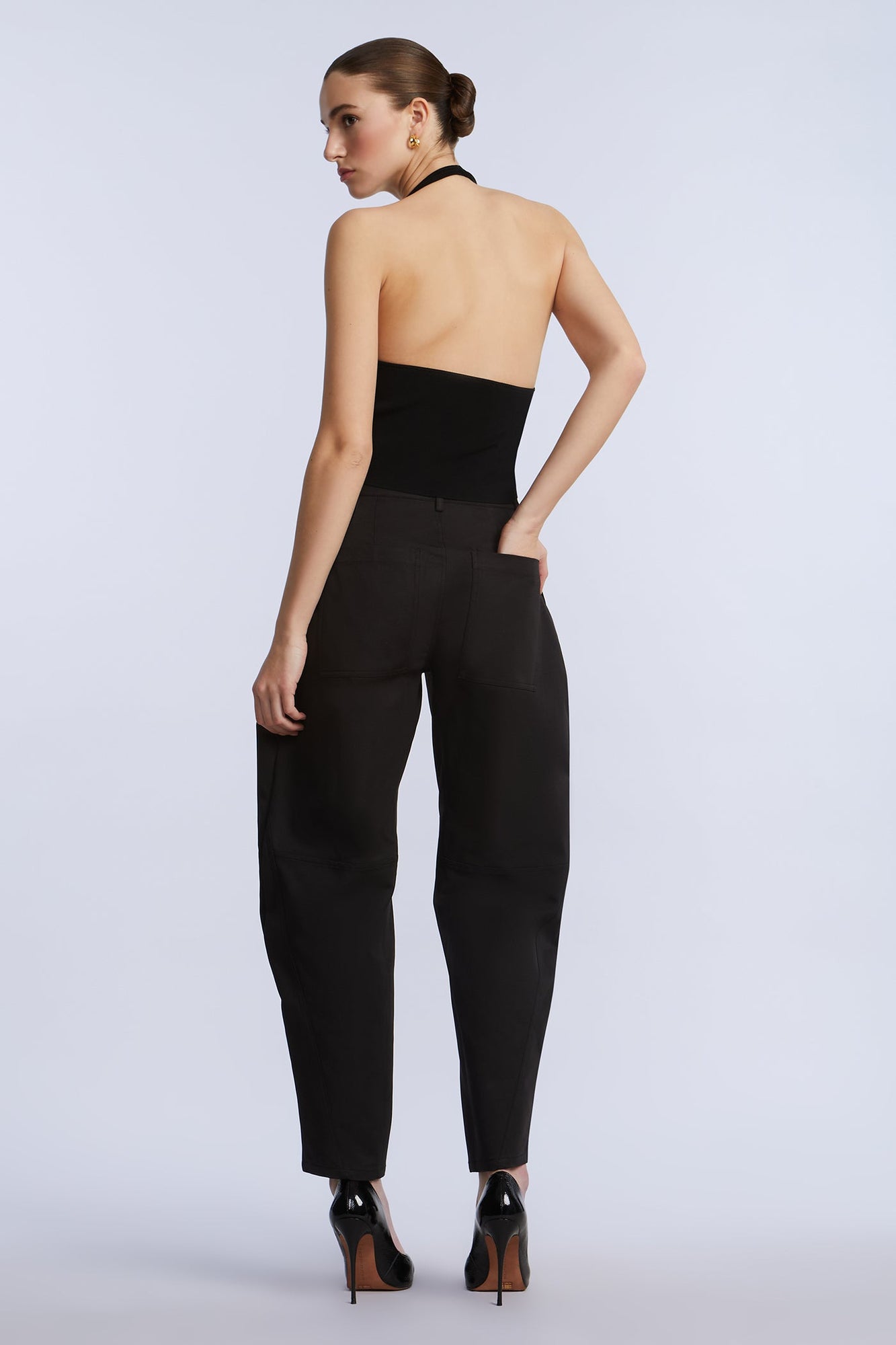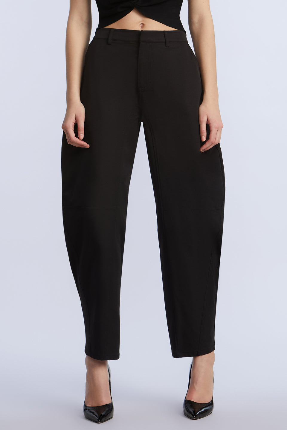 Taffeta twill puddle pants with a sculptural, curved-leg silhouette and sharp seaming through the thigh. Designed to sit high at the waist and fall into a clean hem that kisses the floor. Style them with a crisp button-down for your 9-to-5, then swap in heels and a bare back for late-night plotting.