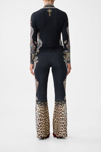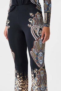 The Istanbul Animalia Jersey Flare Pant is a handcrafted silhouette designed by our in house artisans. Reimagined in an exclusive limited edition print, these luxury jersey pants feature a flared leg cut that falls to an elongated, full length hemline. It's elevated with a waistband and finished with intricately placed crystal embellishments for luminous, eye catching detail.
