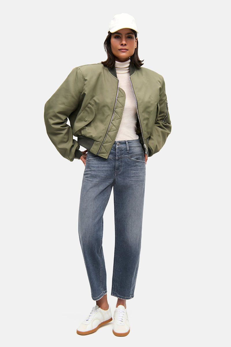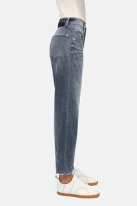 ELIN O-shaped jeans in a cropped length. The perfect combination of stylish design and a comfortable fit. These jeans in gray denim with a dark wash hug the figure and create a harmonious balance between width and definition with their voluminous curves and tapered, cropped shape. Thanks to 2% elastane, the jeans offer a perfect fit and exceptional comfort. Available in gray and blue.