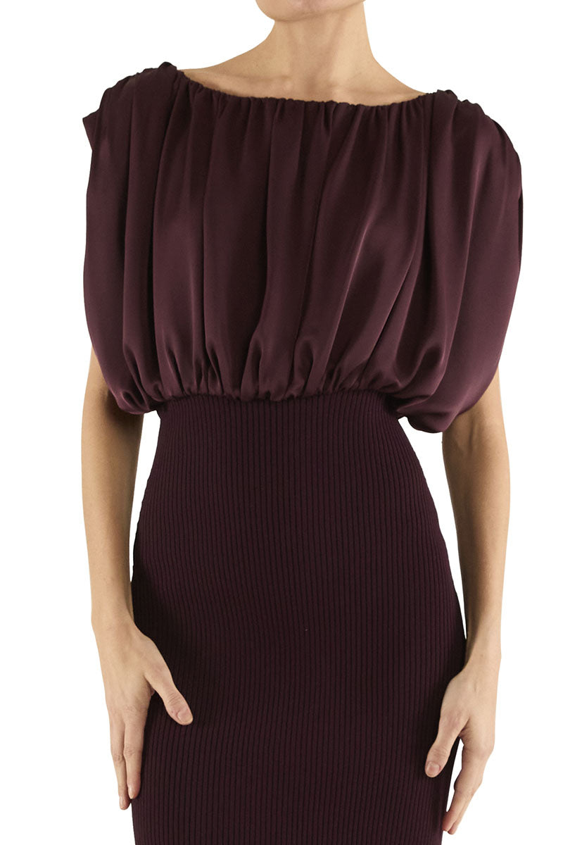 The Rochelle masters texture mixing magic with ruched satin bodice and ribbed knit skirt in perfect harmony. The combination feels special enough for date nights while staying comfortable for all-day wear.