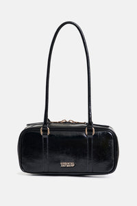 Glossy shoulder bag features a zip fastening and structured top handles for comfortable carrying. The fully lined interior offers ample space for your essentials, while polished gold-tone hardware and a subtle logo add a refined touch. This shoulder bag is a smart, polished choice for everyday use.