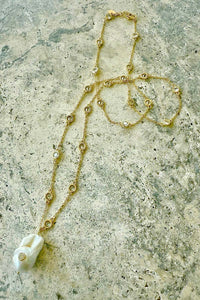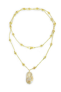 Baroque cz pearl drop on long 34" cz gold chain with cz lobster. Wear it long or double wrap it!