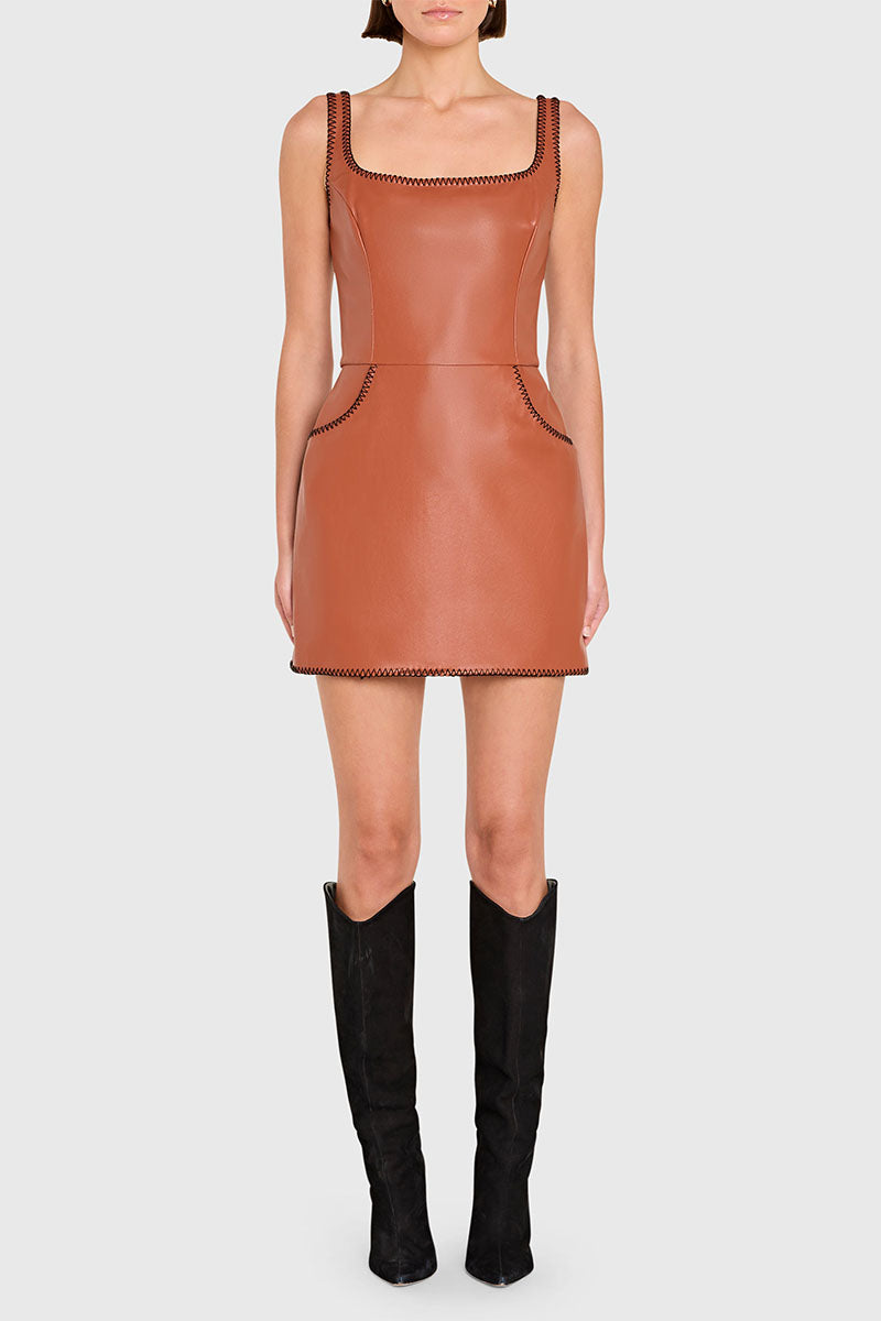 - Decorative Whip Stitch at Neckline, Straps, Hem, and Pockets