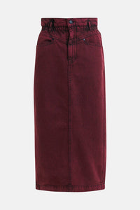 Made from a cotton denim overdyed, this midi-length skirt features a timeless pencil silhouette with a slit at the back hem for ease of movement. The paperbag elasticated waistband offers a flattering and comfortable high-rise fit.