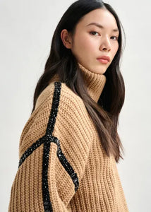 A refined knit with a touch of sparkle, this wool-blend turtleneck — woven with soft alpaca fibers — brings subtle glamour to everyday layering. Glass rhinestone embellishments adorn the sides and center of the sleeves, adding a light-catching detail to its silhouette. It's finished with ribbed trims and a detachable collar.