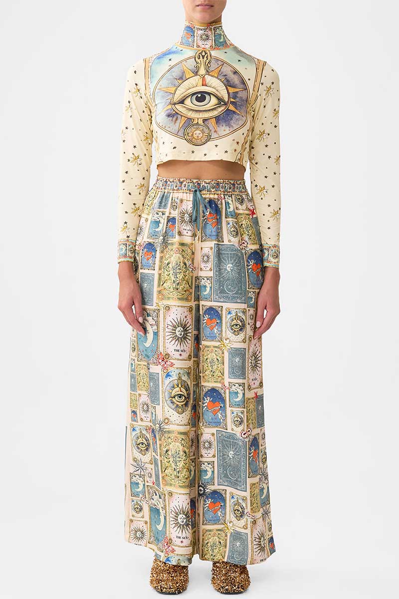 The My Lucky Stars Cropped Jersey Turtleneck is a handcrafted silhouette designed by our in house artisans. Reimagined in an exclusive limited edition print, this jersey turtleneck is cut with a fitted, cropped fit to sculpt the feminine form. Its features long sleeves that are framed by a high neckline which balance the cropped hemline.