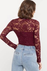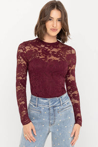 Sheer floral lace envelops the neck, shoulders, and sleeves, seamlessly blending into the sweetheart lined bodice of this refined top. An elevated piece, it pairs effortlessly with skirts or pants for polished outfits.