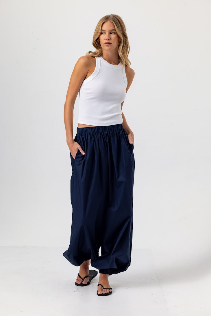 This tank is fitted to perfection with wide binding at the neck and armhole. Pre-shrunken and washed in Los Angeles. Size small length measures 19.75".
