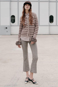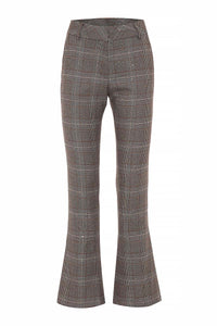Tailored for ease and impact, these cropped bootcut pants are cut from a lightly sequined Prince of Wales check fabric for a hint of shine. The streamlined fit and clean waistband make them ideal for pairing with polished blouses or structured jackets. Finished with practical pockets and a flattering mid-rise, they're a versatile choice for work events or night-out looks.