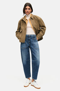 OCEAN jeans in an O-shape and cropped length. This denim is part of the AUTHENTIC SIGNATURE denim capsule, which stands for robust, authentic textures and modern washes – ideal for an urban, confident look. The jeans impress with their blue denim tone and offer excellent comfort thanks to the elastane content. The wide-leg silhouette, which tapers towards the bottom, ensures a balance between width and definition. The diagonal pockets add a modern touch and perfectly round off the unique look. A versatile pair of jeans for those seeking both style and comfort.