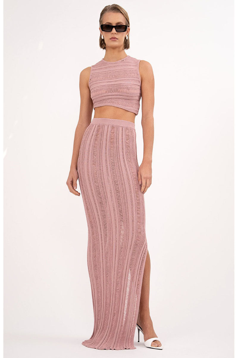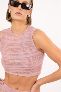 The Jasmine Crop is an asymmetrical top made from a textured knit.