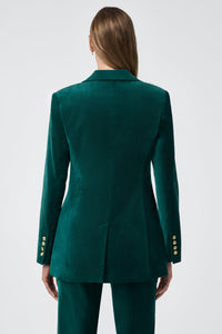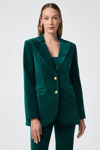 Go bold in this green cotton velveteen jacket. The perfect finishing touch to holiday looks, this plush-soft jacket features a collar and lapel, button front, and printed lining.