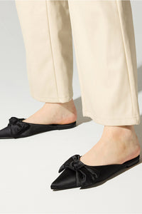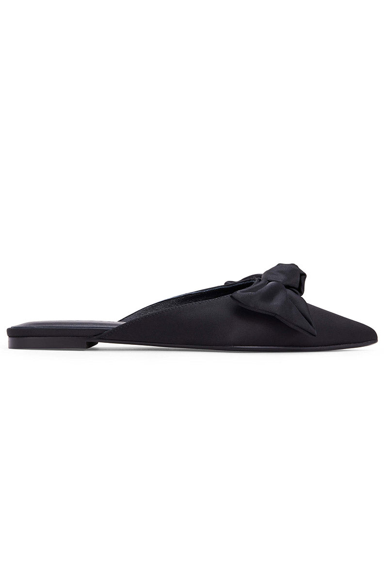 Timeless with a twist, the Clara Bow in Black Satin is your go-to for instant sophistication. The pointed toe and oversized satin bow strike the perfect balance between classic and statement. Whether you're dressing up or dialing it down, this flat finishes any look with quiet confidence.
