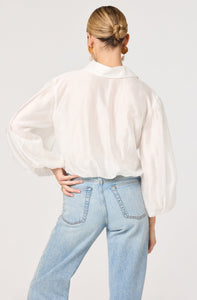 This top features soft balloon sleeves with a bracelet length cut for a contemporary silhouette. A polished staple that transitions seamlessly from workdays to evening plans.