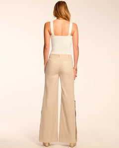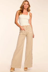 The Giselle brings wide-leg elegance with utility edge featuring patch front pockets, functional button details on the legs, and a high-rise fit. She sweeps when you walk, making these perfect for tucking in blouses for work or pairing with cropped knits for casual outings.