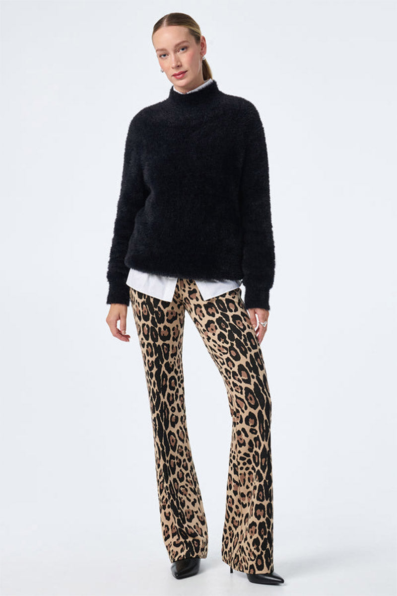Take a walk on the wild side in these dressy pants made of viscose knit jaguar jacquard. These bootcut, patterned pants feature a flat front, side zip, slim fit, bootcut hem, and a full-length inseam. Pair these stretchy, slim-fit pants with our matching top or coat for a complete look.