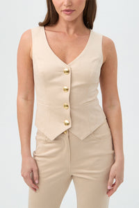 This button-front V-neck vest is polished, sleek, and perfect for transitioning your look from day to night. Made of soft, stretchy faux suede, this vest is a fall-ready essential piece. Pair this tailored sleeveless vest with our matching pants for a complete look.