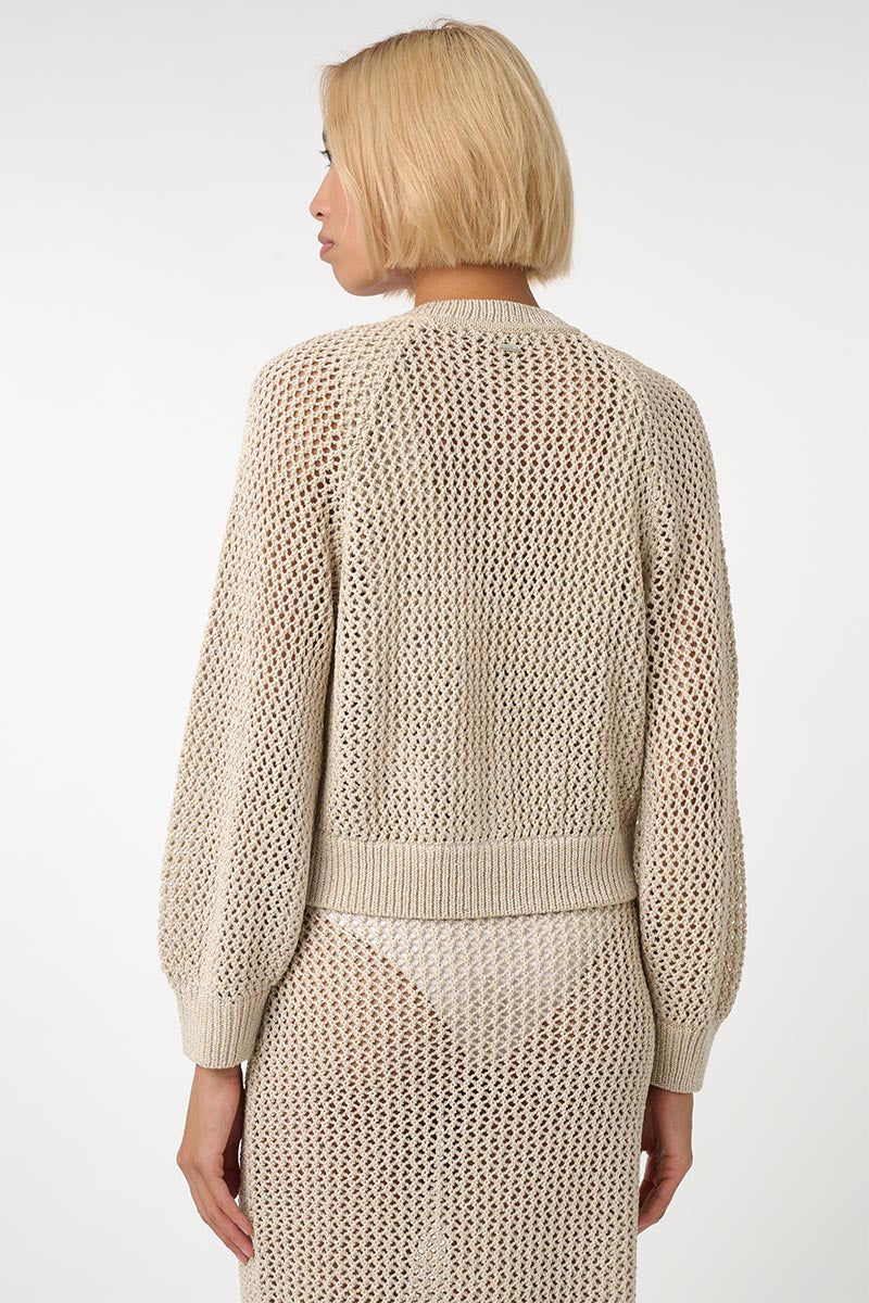 A modern take on the classic cardigan. The Martha is crafted from sequin crochet with raglan sleeves for an effortless drape and clean lines. It layers seamlessly over everything from tailored trousers to fluid dresses.