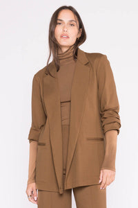 Soft ponte knit fabric creates the perfect "relaxed but chic" look but doesn't wrinkle. An oversized blazer that lives somewhere between zoom meetings and backyard dinners. Self-lined lapels and deep pockets. The perfect piece to pair with our wide or slim leg pant.