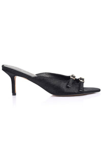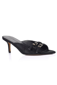 Embrace understated luxury with the Shannon sandal. This effortlessly chic peep-toe mule features a distinctive calf hair finish, complemented by a delicate stiletto and sleek double-buckle accents. Crafted for the modern minimalist, this refined kitten heel perfectly fuses sophistication with statement style—your go-to piece for elevating any look, day or night.