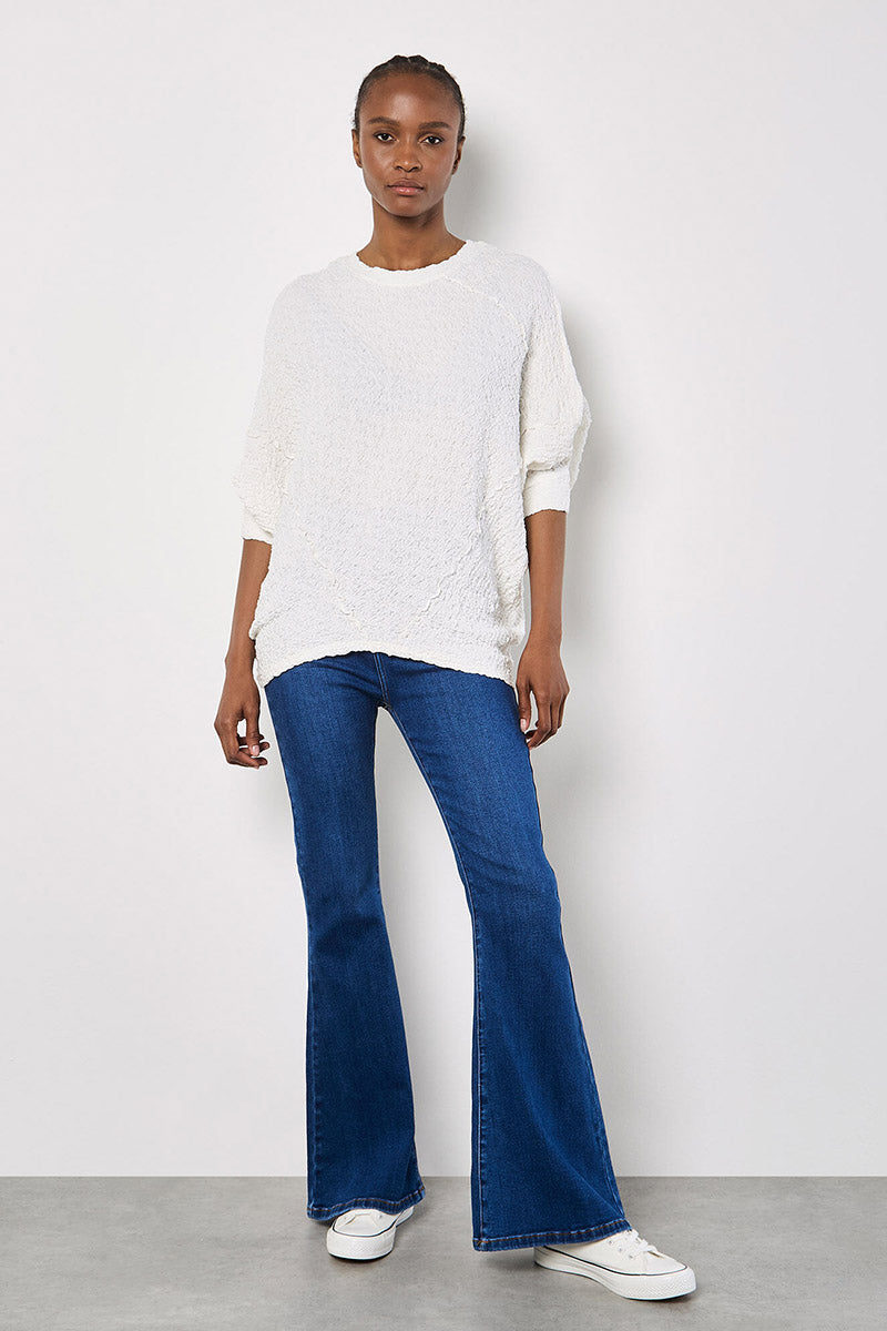 Crafted from a breezy cotton blend to a textured finish, this top is made for warmer days. Lined for comfort, it features batwing sleeves and a shark hem. Style it with a maxi skirt to create a casual free-flowing silhouette.