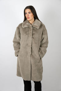 - Luxe taupe faux fur that feels as rich as it looks